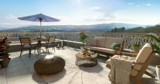 Résidence sécurisée, Proche parc, Ilot paysager, Vue sur la montagne, Baie vitrée, Proche commerces, Vue panoramique, Proche écoles, Parking, Isolation phonique, Balcon, Isolation thermique, Point lumineux terrasse, Terrasse